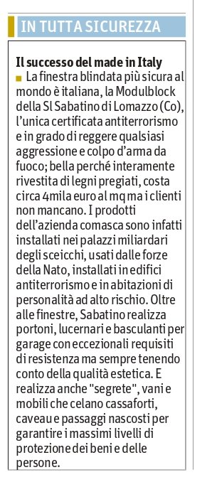 Prestigiosi quotidiani, riviste e giornali hanno parlato della S.L. Sabatino. Qui di seguito trovi un elenco di documenti che testimoniano la qualità e la professionalità dell’azienda, e provano inoltre quanto il suo nome sia conosciuto in tutta Italia.